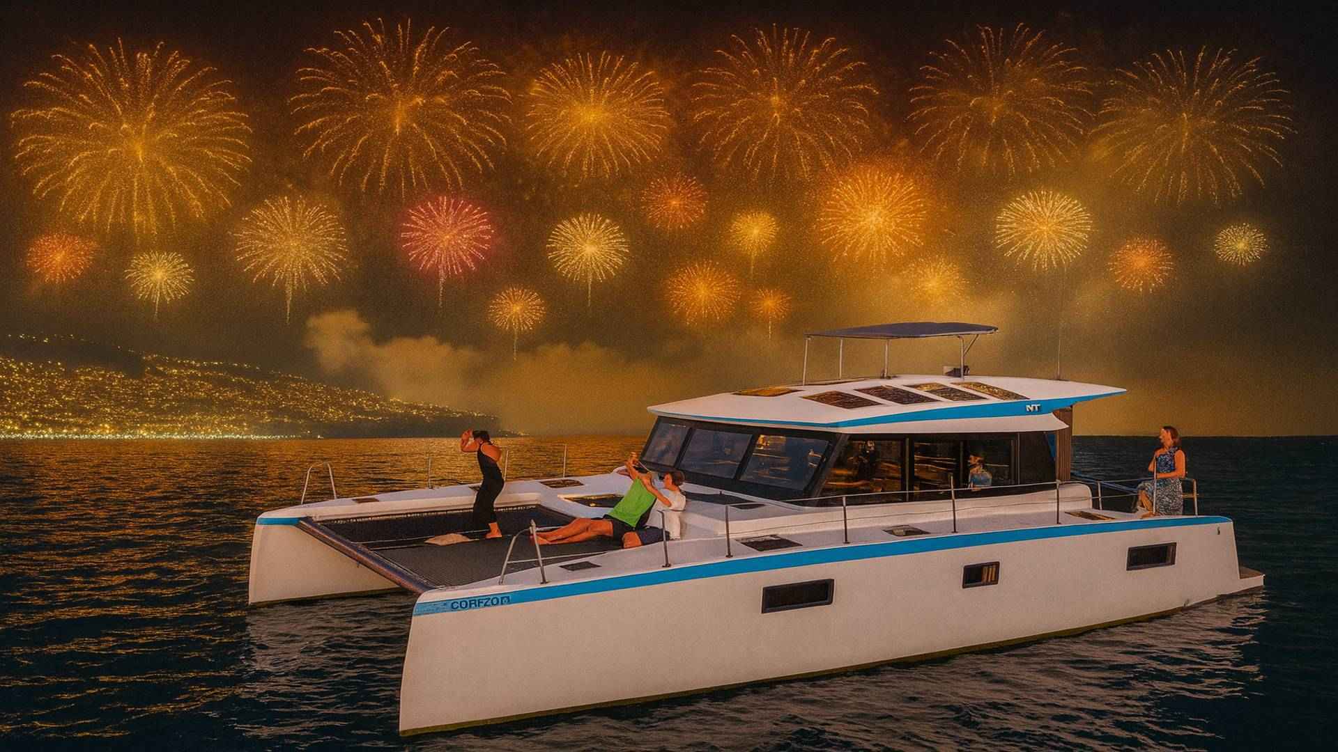 🌟 Front-row view of Madeira’s iconic New Year’s Eve fireworks 🍴 Snacks & Drinks 🚤 Luxury catamaran with music, lounge areas & professional crew